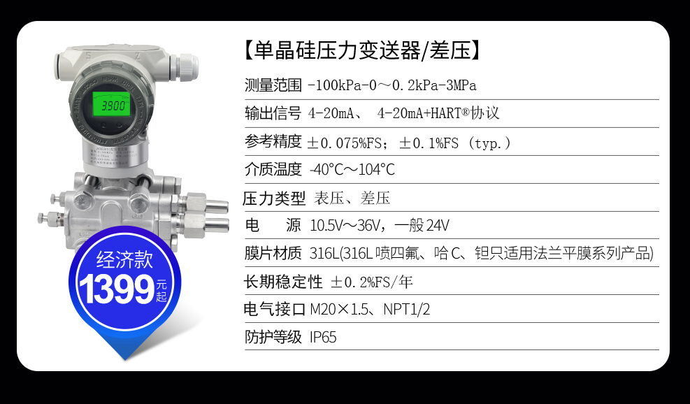 差壓安裝式表壓/絕壓變送器用于測量液體、氣體或蒸汽的液位、密度、壓力,然后將其轉(zhuǎn)變成4~20mADC HART電流信號輸出。采用先進的高精度單晶硅技術(shù),測量精度高達0.075級,特有的雙過載保護膜設(shè)計,單向過壓高達3MPa