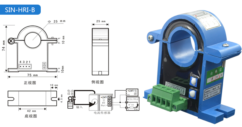 電流變送器可以直接將被測(cè)主回路交流電流或者直流電流轉(zhuǎn)換成按線性比例輸出的DC4~20mA(通過250Ω 電阻轉(zhuǎn)換DC 1~5V或通過500Ω電阻 轉(zhuǎn)換DC2~10V)恒流環(huán)標(biāo)準(zhǔn)信號(hào),連續(xù)輸送到接收裝置(計(jì)算機(jī)或顯示儀表)。