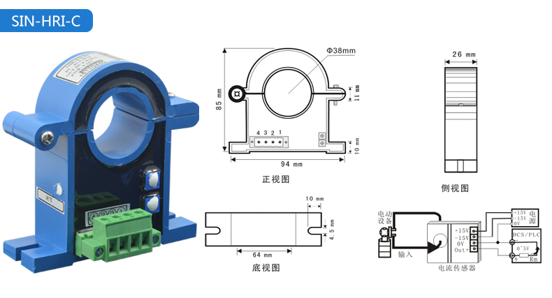 聯測_霍爾電流變送器_輸入電流:0 - 0.1A...1000A_