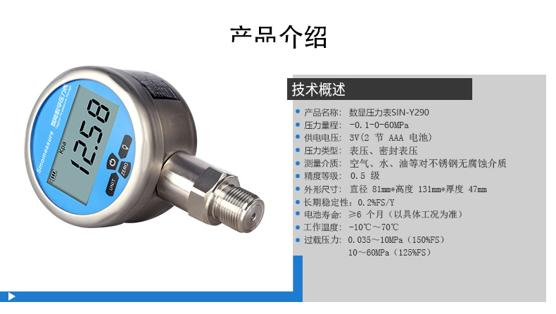 聯(lián)測數(shù)顯壓力表Y290,內(nèi)置高精度壓力傳感器,能夠 準確的實時顯示壓力