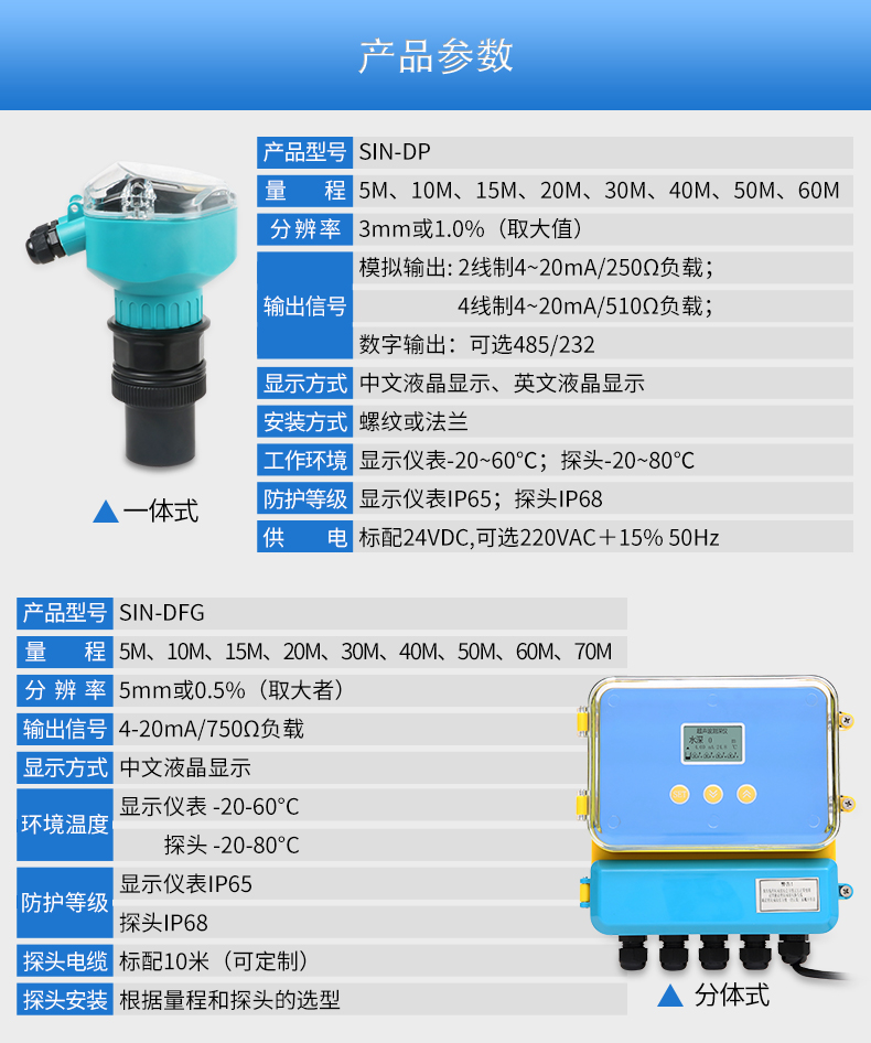 您的位置: 首頁 > 超聲波液位計 >聯(lián)測_SIN-DFG_基礎(chǔ)款_分體式超聲波液位計/物位計/水位儀 污水 料位液位測量_